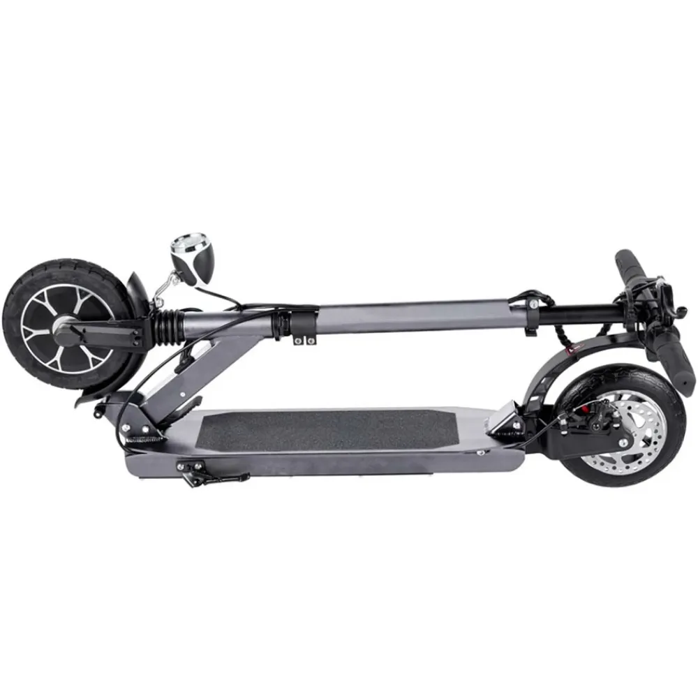 Электросамокат оснащен двигателем с передним приводом мощностью 250 Вт, обеспечивая разгон до 25 км/час. Питание подается от литий-ионного аккумулятора емкостью 8 Ач. Батарея полностью заряжается за 4 часов в домашних условиях от обычной бытовой розетки и позволяет пройти до 25 км без подзарядки. Передние амортизаторы и 8 дюймовые колеса гарантируют свободное преодоление дорожных неровностей. Алюминиевая рама обеспечивает маневренность и небольшой вес 10,8 кг. Дисковые тормоза отрегулированы и эффективно выполняют свои функции. Складная конструкция рассчитана на удобство перевозки тс. Надеемся вам понравился товар. Телефонный звонок менеджеру ускорит процесс заказа и доставки товара.