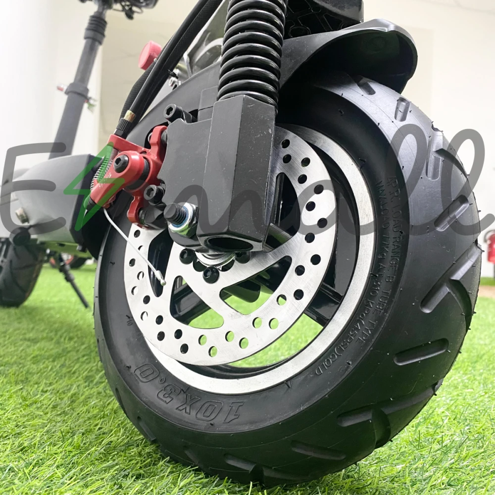 У него большие колеса в 10 дюймов, большая дека, которая предполагает установку дополнительного сидения. Седло сделано на пружинах для дополнительной безопасности езды, подседельный штырь оснащен дополнительной амортизацией.