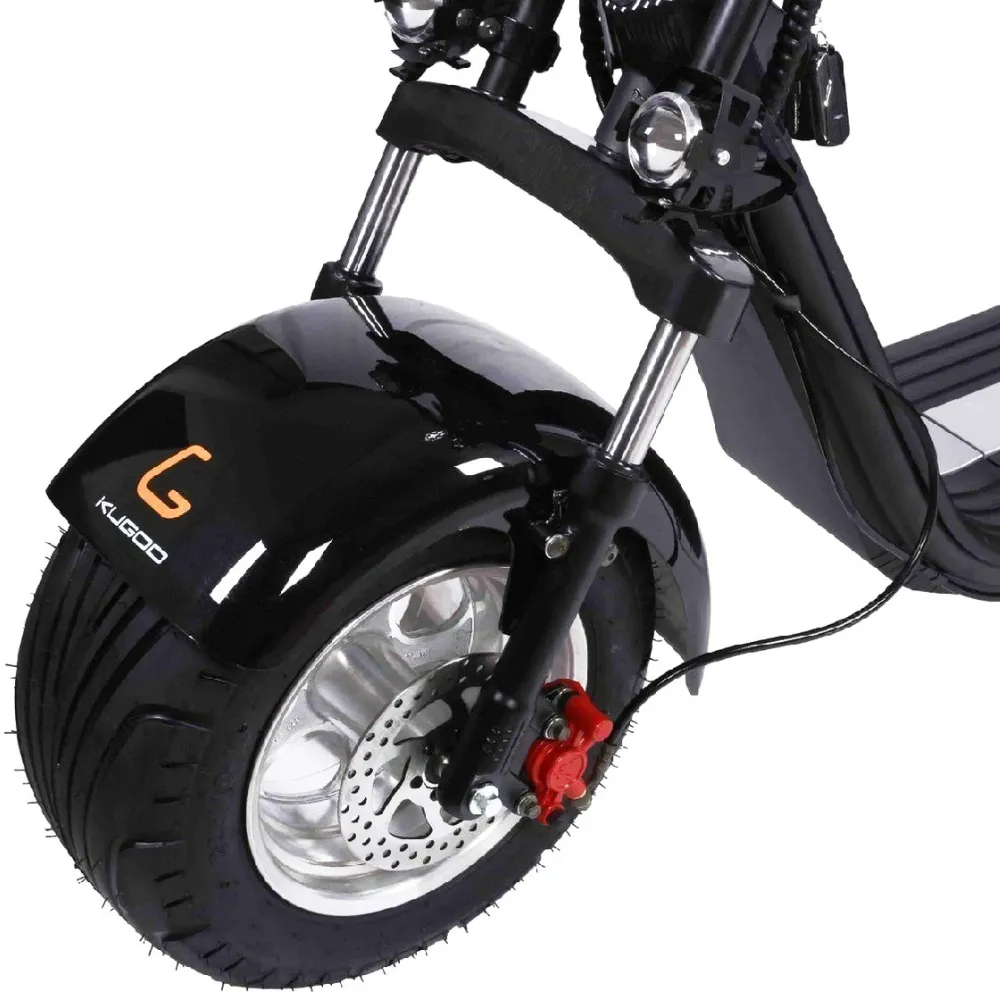 Электроскутер  Citycoco Kugoo C6 – обновленный вариант бренда занимает лидирующие позиции в продажах. Брутальный кричащий дизайн заинтересовал райдеров-экстремалов и любителей рыбалки. Широкая отлично сцепляемые шины обещают отличную проходимость и отсутствие проблем в дороге. Техника создана для езды по бездорожью, не разочарует при преодолении небольших препятствий и путешествии по лесным тропинкам.