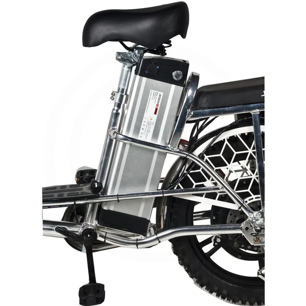 Техника представлена надежной конструкцией, изготовлена из прочного и легкого алюминия. Производитель позаботился об улучшении скоростных характеристик, обеспечив электровелосипед задним приводом. Быстросъемный литий-ионный аккумулятор обеспечивает запас хода на одном заряде до 100 км. Для простоты управления и возможности ориентироваться на местности техника оснащена современным бортовым компьютером. Абсолютная безопасность поездок обеспечивается наличием передних барабанных и задних гидравлических тормозов. Возможность перейти на педальный режим предотвращает возникновение аварийных и непредвиденных ситуаций.